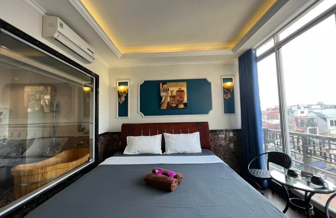 Airconditioning, samen met koffie- en theevoorzieningen, zorgen voor het gemak op de kamer in dit hotel in Hanoi. Andere extra's omvatten een apart toilet en een douche.